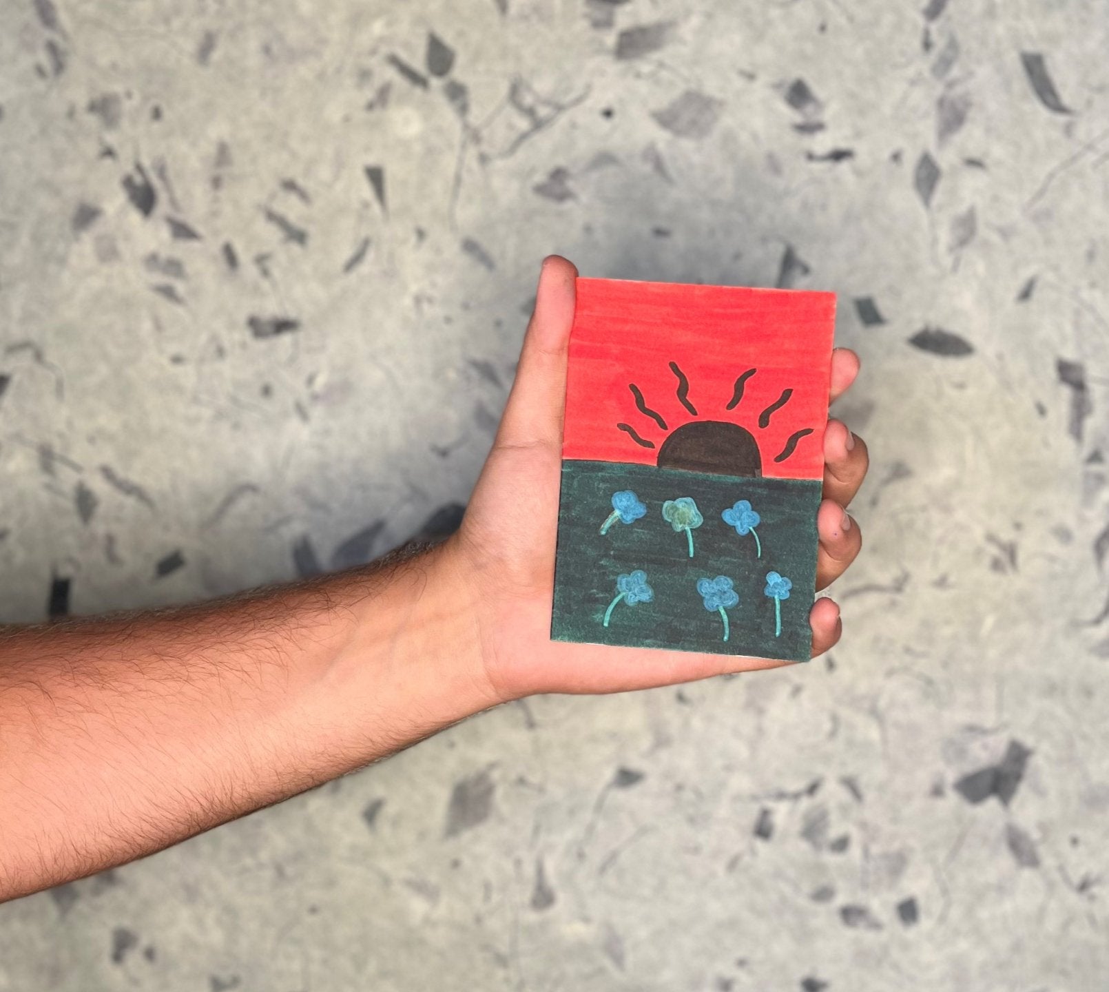 “Hi, my name is Anthony M., and I am from Bellflower. I make art to bring something new into the world. It makes me feel good about myself. I use acrylic and watercolor paint, carving tools, and pens. I’d like people to know that I am keen on the little details and forms in my art. I like making anything that comes to mind.”