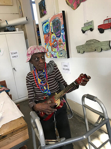 Veria Williams’ has been working at the ECF Art Centers since 1972. Her creative practice spans four decades and a variety of mediums ranging from paintings on paper and canvas, to mixed media, sculpture and print-based works. Although she is largely self-taught, her body of work parallels the spontaneity and dynamism of abstract expressionism. Throughout her active years as an artist, Williams has resisted re-creating and re-presenting existing images and text, as such, her work reflects a singular creative impulse and personality, in addition to the uniquely affective mark of time.