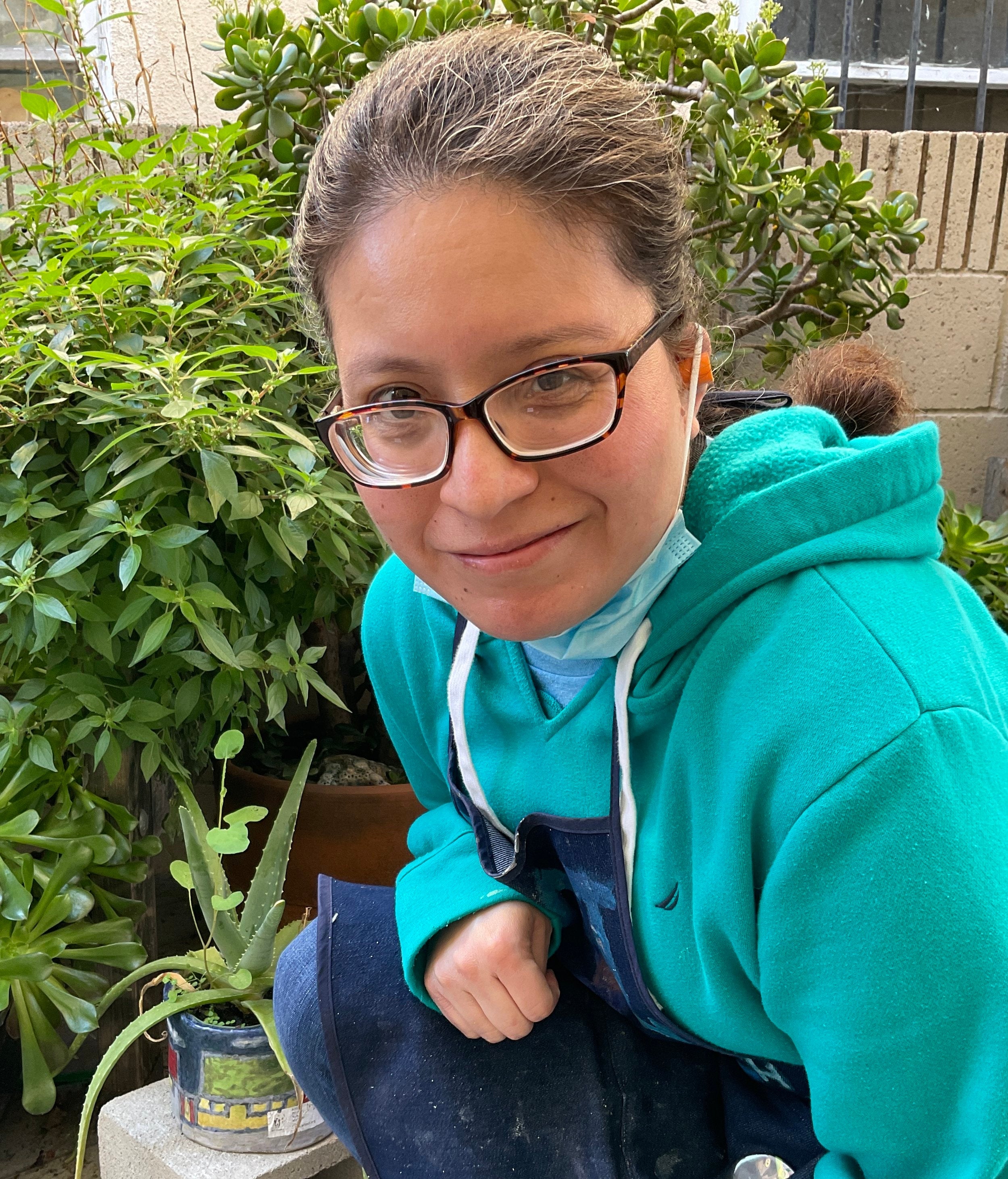 Jennifer joined the San Pedro studio in July of 2022. Having an admirable work ethic, Jennifer typically has multiple projects in the works and bounces between mediums. Finding her ability in fiber arts has inspired an array of home goods and fashion accessories and she is continually updating her list of “good ideas.” Jennifer’s positivity and eagerness in the studio is a creative force to be reckoned with.